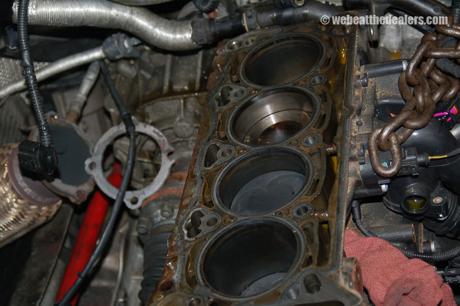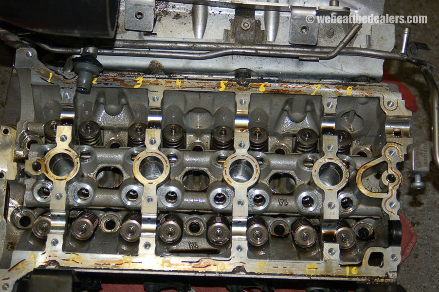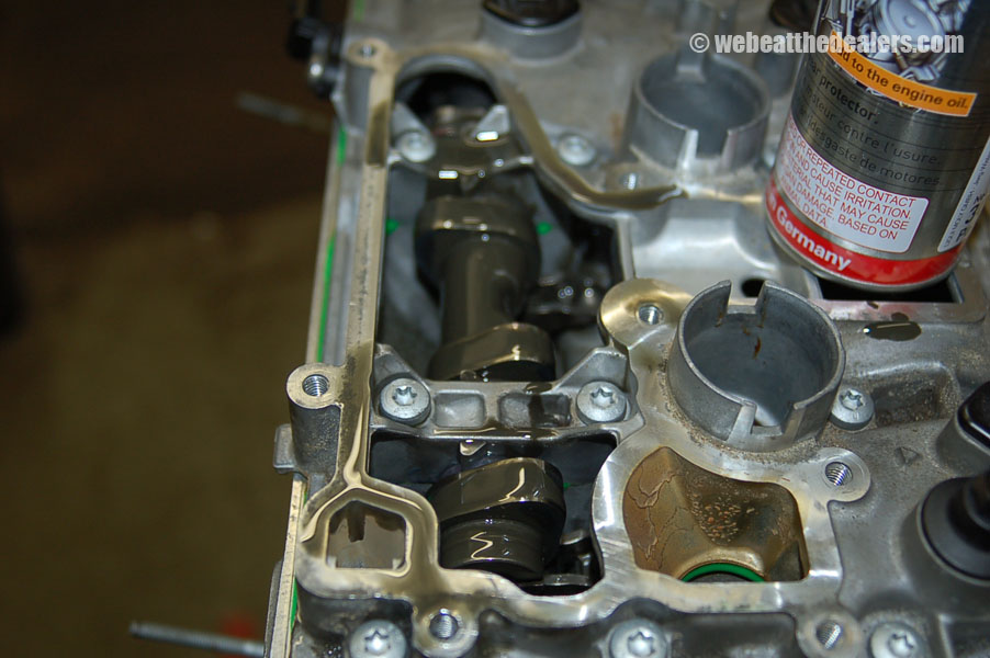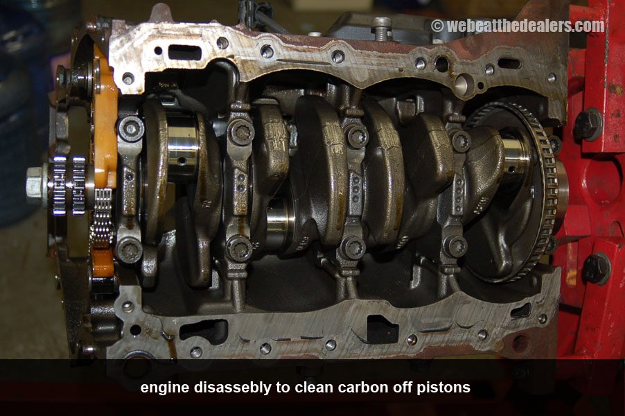 It is then required to remove all timing chain components and do a visual inspection on all the timing chain components and look for broken guides, defective tensioners, stretched timing chain, broken balance shafts, excessive wear on camshafts, excessive wear on camshaft bearing bracket, damaged adjuster, broken rocker arms, and sludge buildup. When the oil changes are not done at 5000 miles, the engine starts to buildup sludge and this can cause the tensioners to collapse and fail, cam adjuster to fail and not allow it to advance and retard the timing when the ecu demands a action, and guides get worn out excessively to the point that they become weak and bridle and break into multiple pieces which can cause a oil restriction anywhere in the oil lubrication system leading to more damage in the engine. Due to improper or lack of lubrication can cause the roller pins in the rocker arms to become worn out and disassemble from the rocker arm causing tapping, metallic, and clinking noises etc and lost in performance. Excessive carbon buildup causes injectors to fail and the engine to run lean and major engine damage can be caused such as burned or broken valves, valves to not seat properly causing misfiring, piston rings to get damaged and detonation in the cylinder. Because of a correlation problem between the cam to crank or carbon buildup we also do a cylinder leak down test to check for bent valves, broken valves, valves not seating properly, damaged pistons, and damaged piston rings etc..