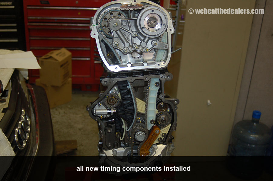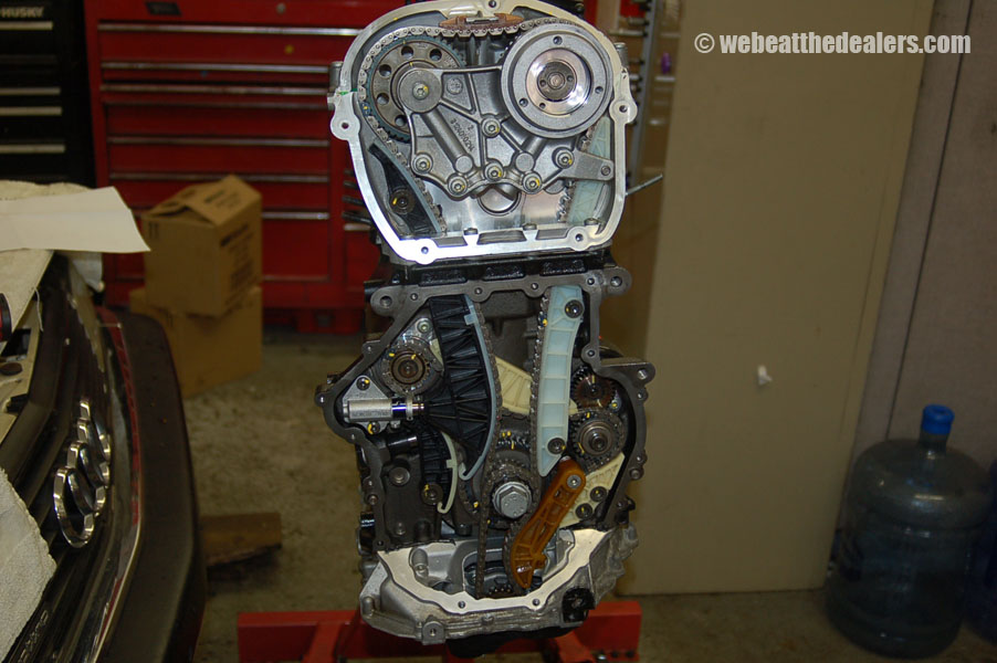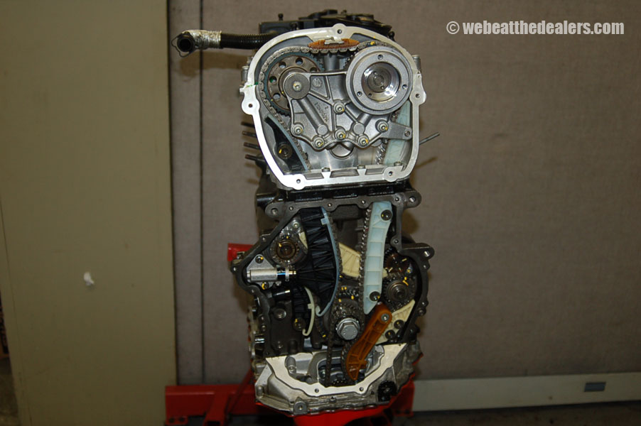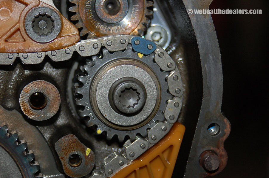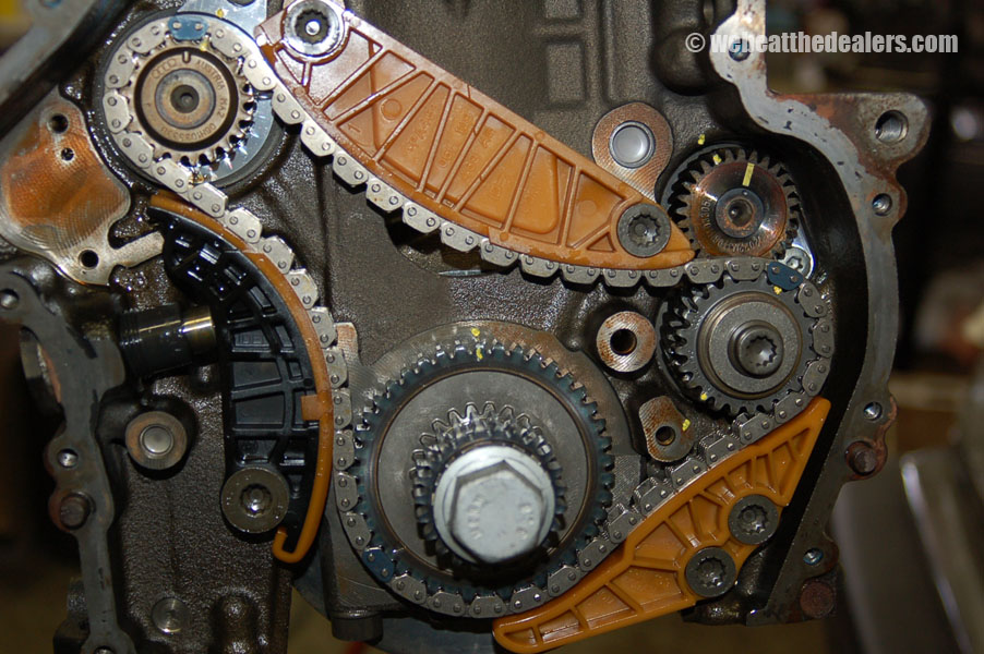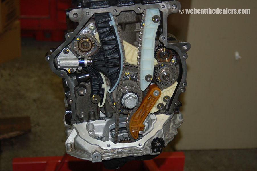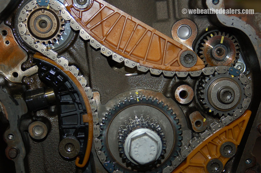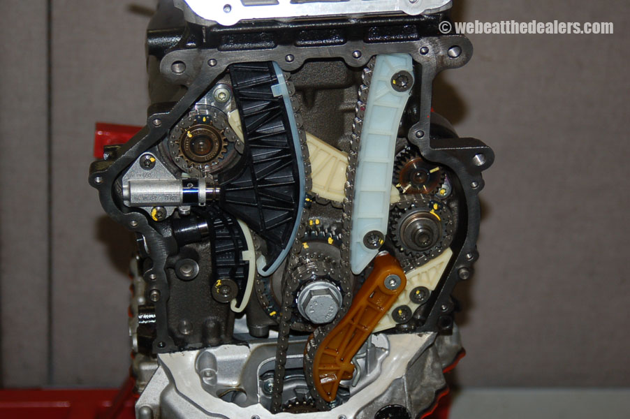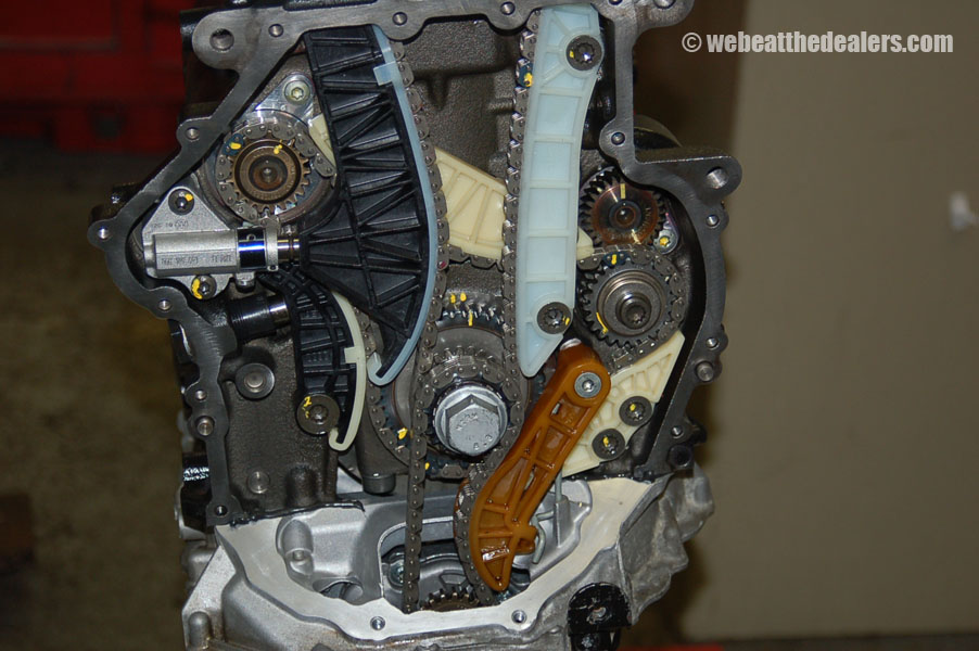 Beginning of the diagnostic procedure we put on the diagnostic computer and compare the actual reading of the intake cam adjuster to specification. We watch to see how far the ecu adjust the timing retard and advance. We scan the ecu for dtc's and if we find a cam position code and a correlation problem between the cam and crank, we know the timing has jumped, broken guides, collapsed tensioners, possible stretched timing chain,sludge buildup, defective oil pump. If their are no dtc's relating to timing but the engine runs rough it is possible the balance shaft timing components have a problem either incorrect timing, defective tensioner, broken balance shaft, or stretched chain which can cause the engine to run rough and cause engine damage. Another common problem the 2.0 has is fuel injectors and carbon buildup which is causing engine failure and major engine problems.
