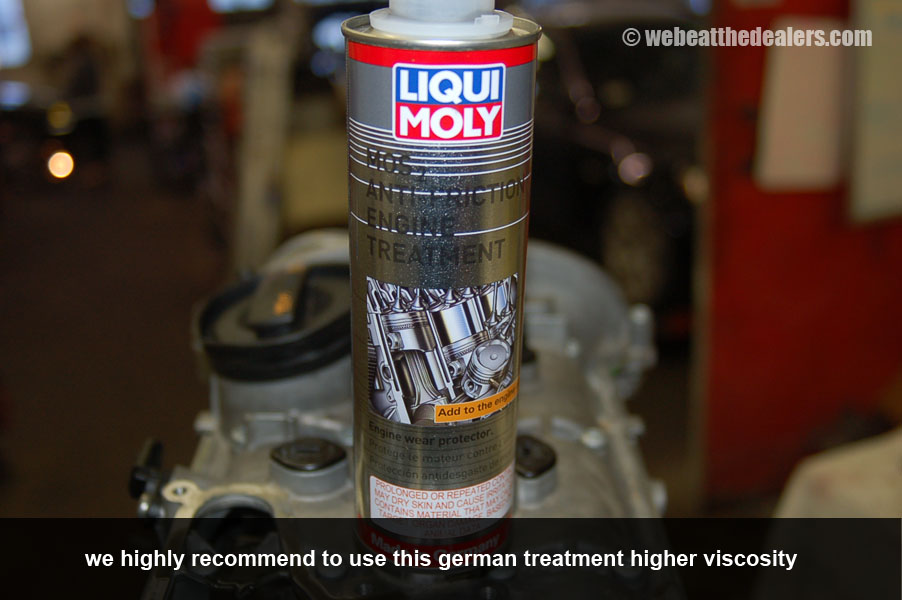 It is highly recommended to do the full timing chain service which includes replacing the timing chains, timing chain tensioners, timing guides, cam adjuster control valve, fuel injectors, decarbonization, and sludge removal. For this engine their is many updates for these parts recommend installing the updated parts.